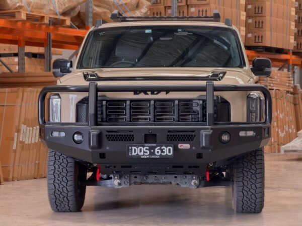 Our Kia Tasman Commercial Bar is designed to offer the ultimate combination of protection, durability, and utility. This bar features a heavy-duty steel construction, ensuring long-lasting performance even under the harshest conditions. Its sleek design is specifically tailored to fit the Kia Tasman perfectly, providing a seamless integration with the vehicle’s existing structure. The Tradesman 4×4 Commercial Bar also includes provisions for mounting additional accessories such as lights, winches, and recovery gear, making it the ideal choice for both commercial and off-road needs. Whether you’re looking to add extra functionality or simply want to improve your vehicle’s appearance, the Commercial Bar Kia Tasman from Tradesman 4×4 is your go-to solution.