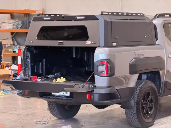 Crafted from premium aluminium, the D1 Solid Aluminium Canopy enhances the aesthetic appeal and overall performance of your Kia Tasman. Its lightweight yet strong construction makes it easy to handle without sacrificing strength. The canopy is fully weatherproof, ensuring that your tools, equipment, and cargo remain dry and secure no matter the weather. With advanced locking systems, your belongings are safely stored, reducing the risk of theft. Designed to fit seamlessly with the Kia Tasman, the D1 canopy enhances your vehicle’s versatility, making it perfect for both work and leisure. Whether you’re transporting equipment or need additional secure storage space, this canopy is the perfect solution for your needs.